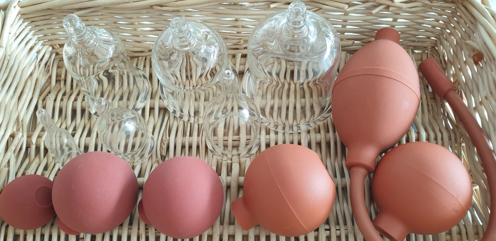 Schröpfgläserset aus Jenaer Glas und Paleusbälle