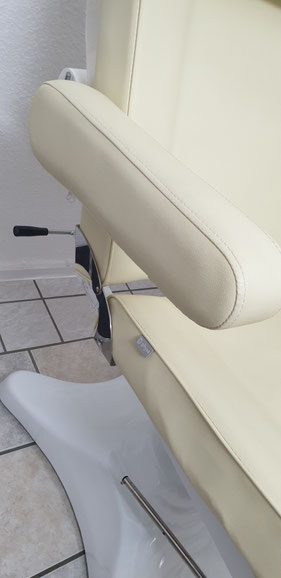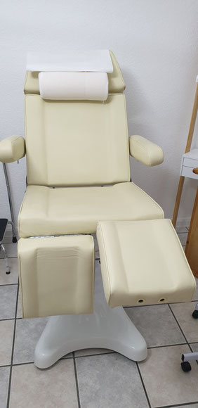 Hochwertiger Fußpflege Stuhl (manuell) der Firma Physa. Er trägt ein mindest Personengewicht von 200 kg.